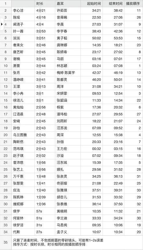 《浪姐7》初舞台采用直播的方式,节目正式播出前,节目组放出节目的连线视频,针对更新的内容,网友们对姐姐们的镜头时长进行统计,接下来,我们一起看一看: