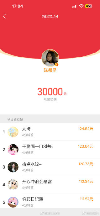 发放平台与形式:红包通过陈都灵微博主页的"粉丝红包"功能发放,用户无需关注博主或完成复杂任务,只需点击"领取"按钮即可参与。