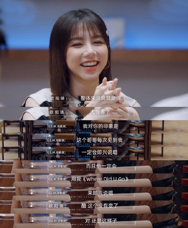 邓紫棋邀请的好友是欧阳靖,两人认识15年,两个有趣的灵魂相互碰撞,见面自然少不了欢乐。邓紫棋演唱的是自己写的一首歌《句号》,这首歌对她来说有很多的故事,当年是哭着写完的,她甚至一提到这首歌就想哭。