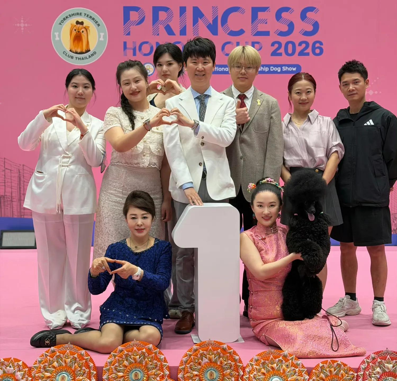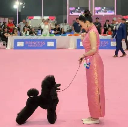 就在刚刚过去的周末,泰国公主杯国际犬展赛场上,霍思燕身着桃粉色改良旗袍,右侧23厘米的开衩恰到好处,搭配一双平底鞋,牵着11个月大的中型贵宾犬“霍蜜蜡”从容登场。三天比赛,这个年轻的小家伙累计拿下幼犬组全场总冠军第一名3次、第二名2次,更在组别赛中八次战胜日本排行第一的同犬种选手——这是中国选手在该赛事的历史最佳战绩。