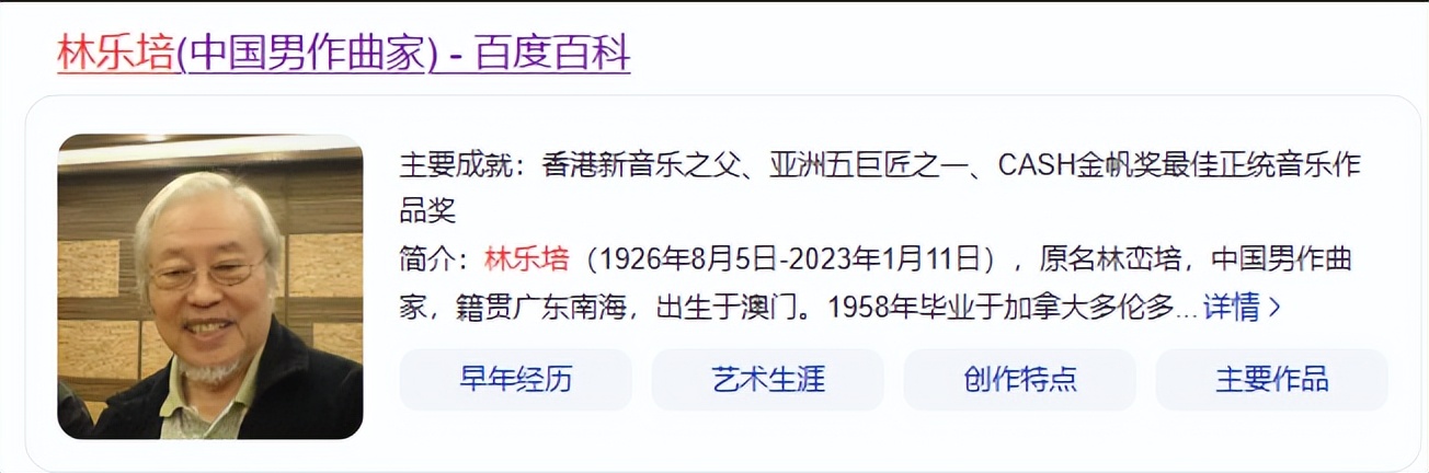 林乐培被誉为“香港新音乐之父”,1926年,他生于澳门,早年远赴加拿大多伦多大学及皇家音乐院研读音乐。