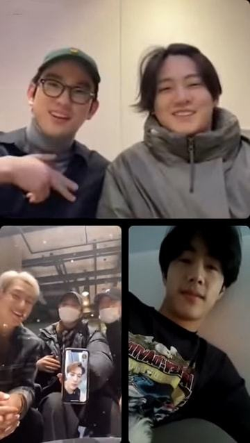 成员大部分都在韩国本土活动,由于防疫政策,JAY B和朴珍荣坐在一起,崔荣宰、BamBam和金有谦另外同框加入,MARK则身处美国洛杉矶,王嘉尔在中国也参与了直播,7位成员跨时差和地域进行合体直播,不仅粉丝,许久未见的成员们也相当激动和开心。