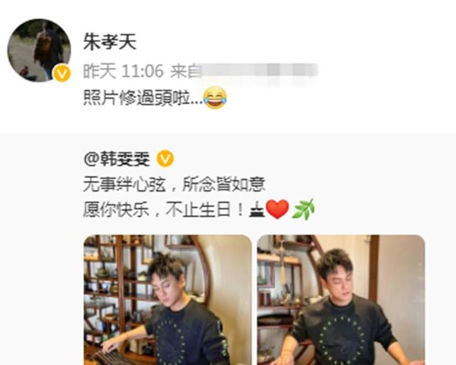 早上,韩雯雯发微博为朱孝天庆生,发文说: