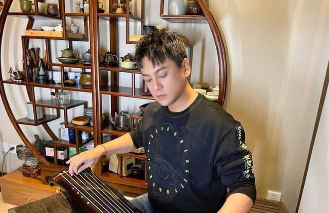 嗯,精修的庆生照里,朱孝天瘦了好多,而且年轻帅气了不少,翩翩公子抚琴诉心中情的模样。