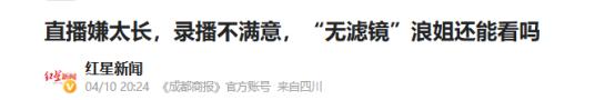 1、直播嫌太长,录播不满意,“无滤镜”浪姐还能看吗——红星新闻