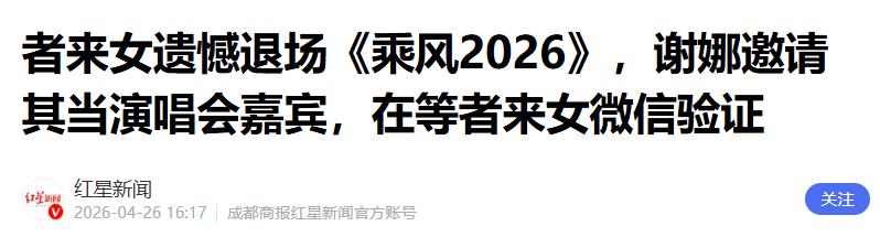 2、者来女遗憾退场《乘风2026》,谢娜邀请其当演唱会嘉宾,在等者来女微信验证——红星新闻