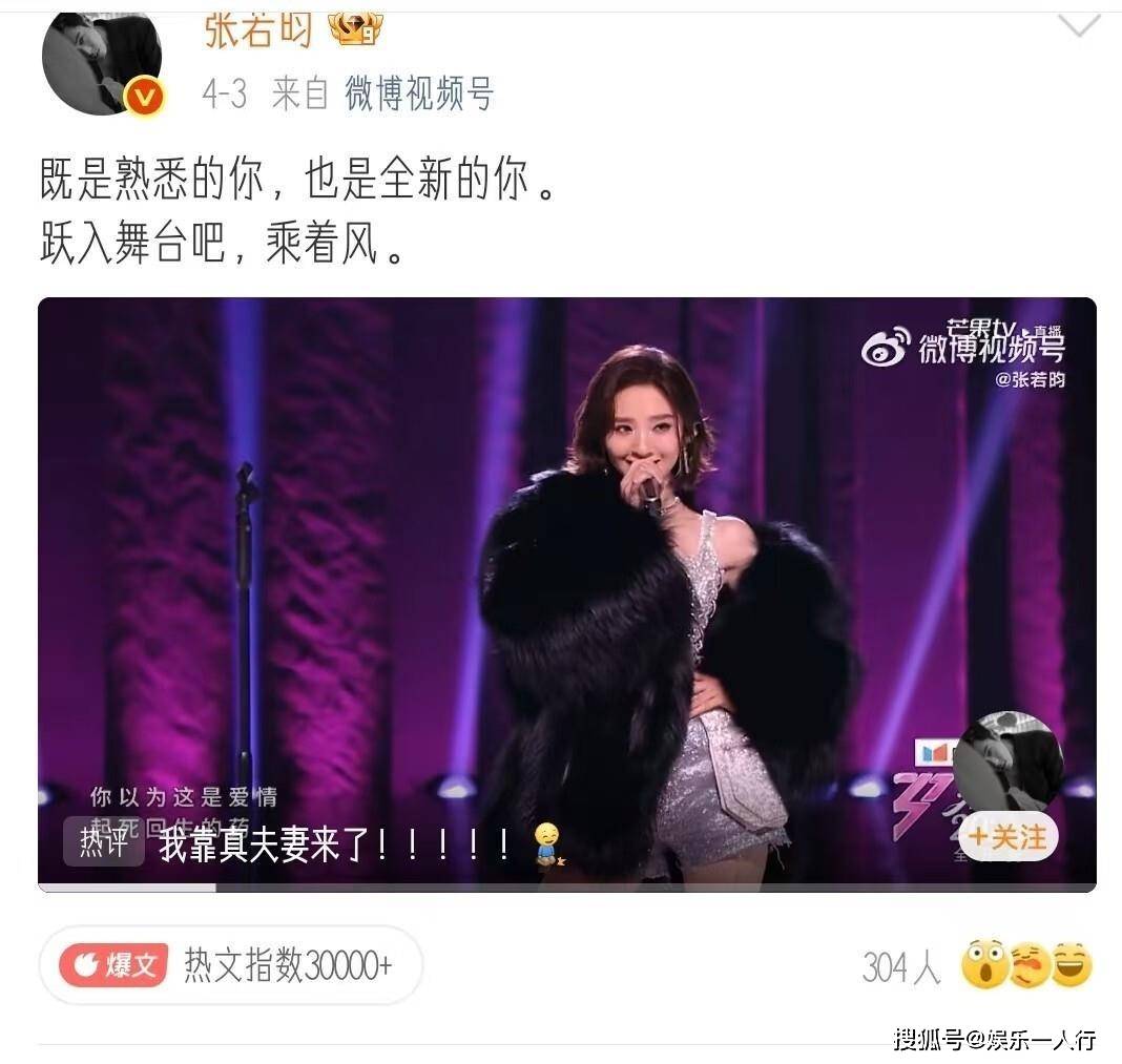 第三类是纯粹的夫妻甜蜜梗。 网友在张若昀4月初转发唐艺昕初舞台的微博下追加评论,那条微博的配文是“既是熟悉的你,也是全新的你”。 新评论写道:“现在不仅是全新的你,还是烫嘴的你”“姐夫,你老婆的rap需要翻译吗”。