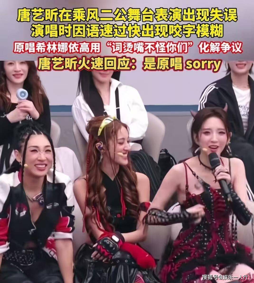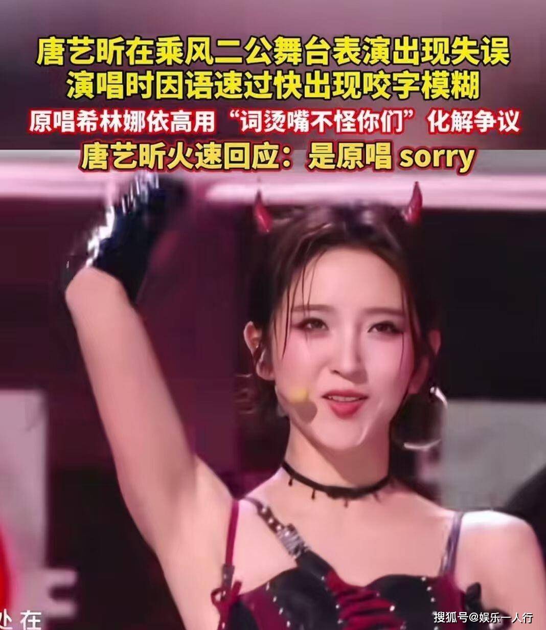 2026年4月24日晚,《乘风2026》二公舞台直播。 唐艺昕所在小组表演歌曲《BonBon Girls》,她主动接下了队友何宣林不敢唱的高难度开场rap段落。 歌词“你嘴巴多毒我才不在乎”语速极快,低音频段怪异,在全开麦无修音的环境下,她的咬字变得模糊不清。