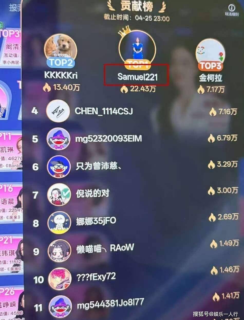 20分钟后,阚清子的乘风值从480飙升至20万,断层登顶榜首。 网友开始追踪这个神秘“榜一大哥”的身份。 账号名“Samuel221”被迅速破译——Samuel谐音“喜欢”,221谐音“阚清子”,合起来就是“喜欢阚清子”。