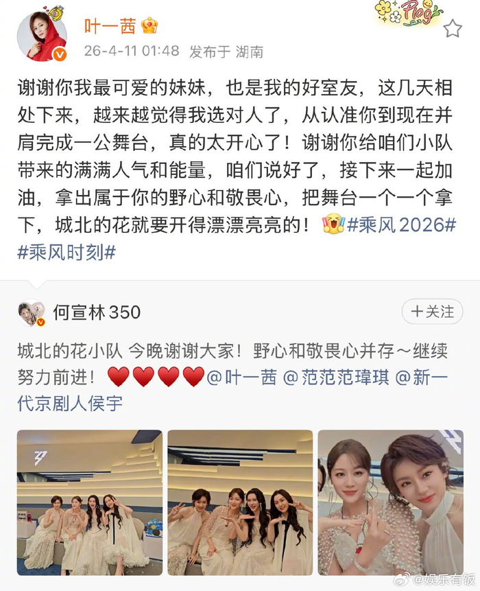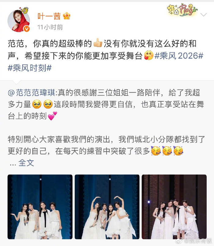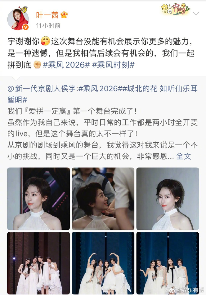 #叶一茜 好会爱人的神仙队长# #叶一茜 城北的花就要开得漂亮# @叶一茜 昨天刚带着全队在宿舍等候、温暖了遭淘汰的赵子琪,而对自己的队员,她深夜挨个发文表白,能看到范玮琪的和声、侯宇的遗憾、何宣林的能量,还说“城北的花就要开得漂漂亮亮的”……有网友形容叶一茜就像一个温柔的避风港,不争不抢,温柔且有力量,她真的好会爱人!