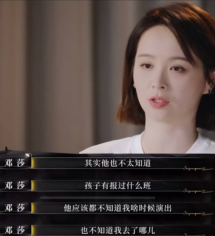 邓莎在事业上升期怀孕生子,婚后便全身心照顾儿子,从此也过上了“丧偶式婚姻”生活。老公不知道孩子报过什么班,也不知道她啥时候演出,孩子成长过程中路行只充当“交学费”的作用。