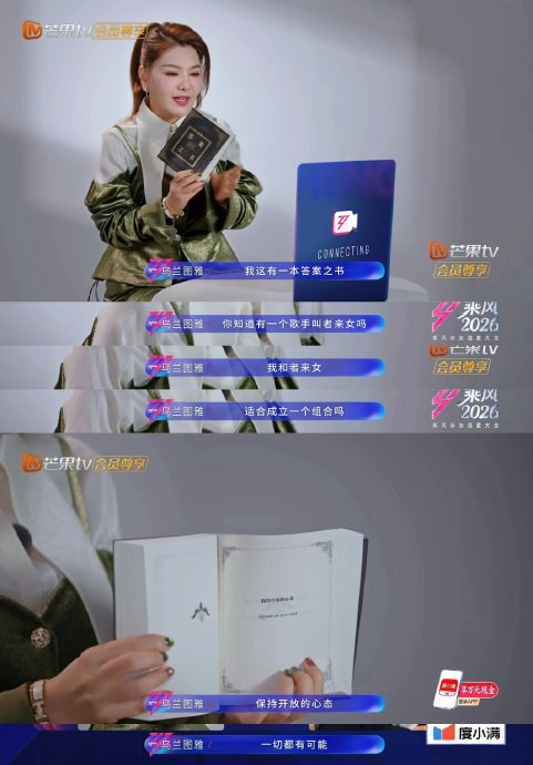 “欧来雅”的诞生绝非空穴来风,其直接导火索是《乘风2026》中的一个关键环节:* 乌兰图雅的发问: 在涉及“答案之书”的节目环节中,乌兰图雅直接向“命运”提问:“我和者来女适合成立一个组合吗?”这一举动被敏锐的观众捕捉,解读为她对与者来女合作的公开兴趣和试探。* 者来女的呼应: 几乎在同一语境下,者来女也向“答案之书”提出了她的疑问:“我在《乘风2026》的舞台上,有机会能和乌兰图雅老师一起合作吗?”两人不约而同地将对方视为潜在合作对象,形成了极具话题性的“双向奔赴”。* 官方的推波助澜: 节目组敏锐地捕捉到这一火花,在后续环节(如队长选人)中,有意无意地推动两人互动,甚至最终促成她们成功组队。这种“官方发糖”的行为无疑为CP热度和命名狂欢提供了最坚实的素材和背书,“欧来雅”的名号随之响彻网络。