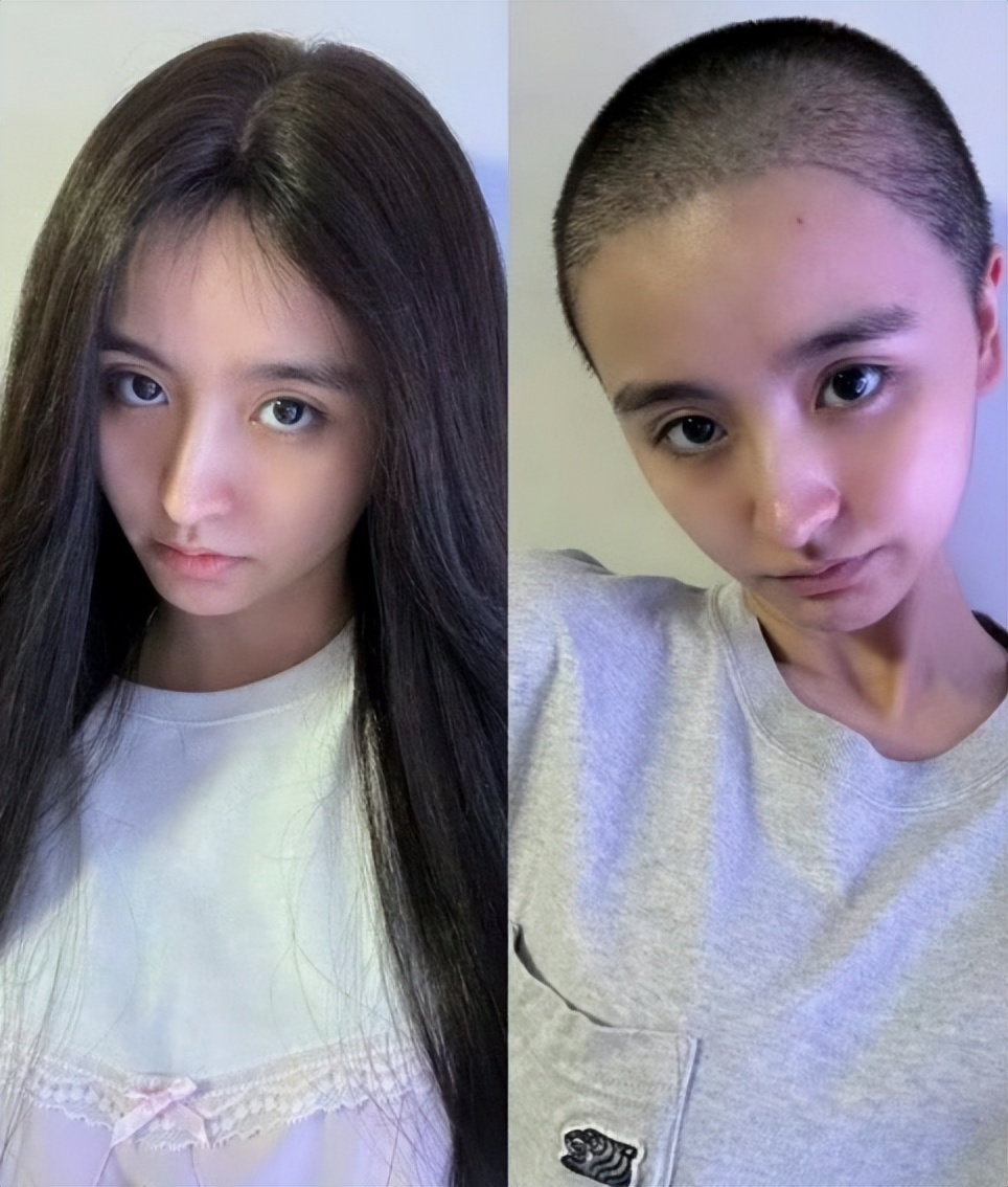 再次露面时,金子涵剪掉了长发,剃成了光头,身材暴瘦,双颊凹陷。