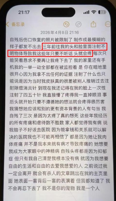 没有露面,也没有说话,只是将手机备忘录展示在镜头面前。
