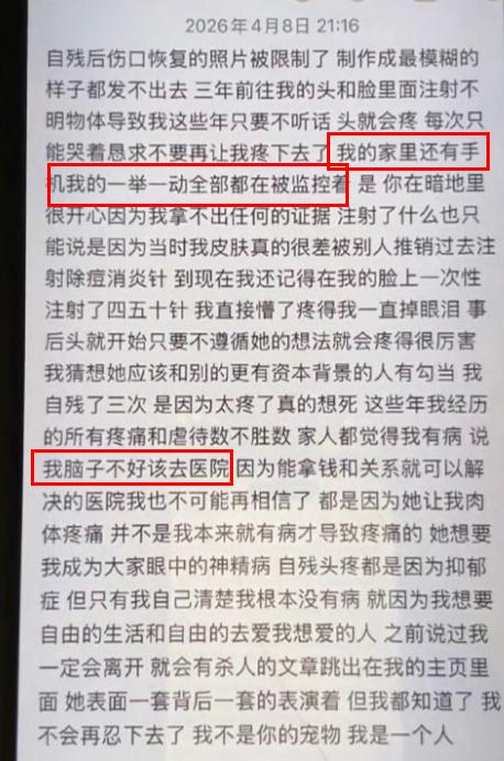 更令人窒息的是,金子涵称家里有监控,她的一举一动都被监控着。