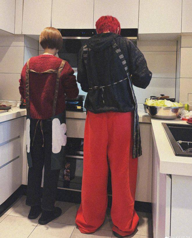 刚过零点不久,杨丞琳的社交账号就更新了——这次不是新歌发布,也不是行程分享,而是晒了一桌热气腾腾的年夜饭!照片里的杨丞琳穿着一件喜庆的红色毛衣,短发干净利落,低头在厨房里炒洋葱,锅铲翻动得有模有样,完全不像舞台上那个酷飒的歌手,更像一个得心应手的居家小能手。旁边的李荣浩,黑色毛衣外套,红头发亮得让人无法忽视,手里正在翻炒着虾,虾子的红色和他那一头鲜艳的红发刚好相配,情侣感完全掩饰不住。