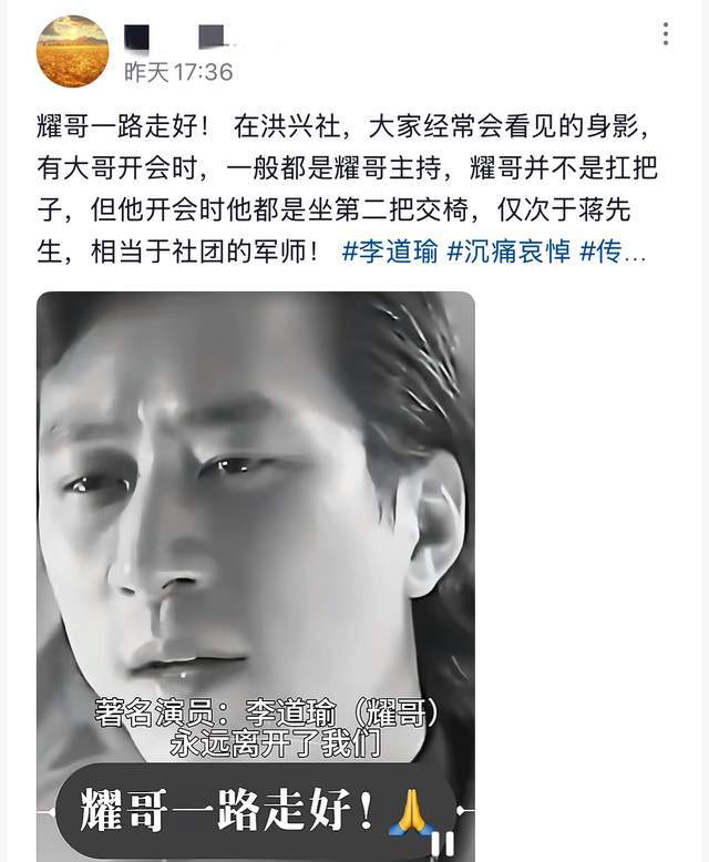 **李道瑜的“白纸扇”时光:一场80后、90后的怀念回忆**,4月4日下午,港星李道瑜的去世消息传出,网友们纷纷表示震惊和怀念,这位曾经红红火火的90年代港星,年仅58岁离世,虽短暂,但他的演艺生涯却在观众心中留下了深深的烙印。,说到李道瑜,谁还没为他的《古惑仔》角色“白纸扇”陈耀而热泪盈眶?在那个风风火火的90年代,港产电影成了青春时代的精神食粮,而陈耀无疑是那个时代的代表人物之一,无论是他的铜色皮肤、飘逸的发型,还是那副随时准备出手的白纸扇,都深深烙在了观众的脑海里,无论是80后还是90后,提到《古惑仔》,陈耀这个角色无疑是那代人青春记忆中不可或缺的一部分。,作为洪兴帮的二当家,陈耀的地位虽不及“红棍”和“草鞋”,但他的智慧和担当却让他成为帮派的重要支柱,他主要负责财务、谈判和谋划,堪称“智囊”,这种角色不仅需要演技上的精湛,更需要形象上的贴合,而李道瑜正是凭借这样的特点,才有机会在《古惑仔》中大放异彩,尤其是在《古惑仔之人在江湖》和《98古惑仔之龙争虎斗》中,陈耀的角色占据了重要位置,成为观众心中的重要人物。,随着时间的推移,港产电影的辉煌也逐渐褪去,李道瑜的角色也渐渐淡出视野,尽管如此,他依然在内地做着自己的生意(酒水),虽然不是大生意,却足以维持日常生活,这种低调的生活态度却让他在观众心中留下了更多的敬意和怀念。,2019年和2023年,李道瑜曾与多位香港演员一同出席中国电影公司时代华娱的分部开业典礼,再次成为媒体的关注焦点,他还与《古惑仔》中“肥尸”梁焯满合作过电影《一舞倾城》,这显示了他在退休后依然保持着与影圈的联系。,无论是对他的演艺生涯还是个人生活,我们都只能为他的离去感到惋惜,毕竟,一个58岁就去世的演员,其生涯虽然短暂,却能让人铭记,实在是不易得来,很多艺人在一生中甚至没有留下像李道瑜这样深刻的印象,而他却用一部电影成名,成为了无数人青春记忆中的一个重要片段。,李道瑜的去世虽然让人心痛,但我们依然可以记住那个带着白纸扇、充满智慧和担当的陈耀,用他来寄托我们对那个时代的怀念,一路走好,李道瑜,愿你在另一个世界安好!你的“白纸扇”形象,一直都在我们的心中挥之不去。**《古惑仔》里的“白纸扇”李道瑜,活得潇洒,死得默默** ,4月4日下午,香港的娱乐圈再次被震惊消息打动:知名港星李道瑜去世,年仅58岁,这位曾经红红火火的演员,仿佛被岁月悄然带走,留下了无数粉丝和业内人士的悲痛和怀念,李道瑜的名字可能在一些年轻人口中并不熟悉,但对于80和90后来说,《古惑仔》中的“白纸扇”陈耀,分明是记忆深处的一段难忘的片段。 ,在《古惑仔》系列电影中,李道瑜饰演的“白纸扇”陈耀,是洪兴帮的二把手,地位仅次于“龙头”和“二路元帅”,虽然没有“红棍”和“草鞋”那么经典,但“白纸扇”的智慧和担当让他成为帮派中的重要人物,电影中,他总是手持白纸扇,气场十足,语调冷静,给人一种无与伦比的威严感,无论是帮派大事的讨论,还是对外的谈判,他总是扮演着重要的角色。 ,李道瑜的演艺生涯并非一帆风顺,尽管在《古惑仔》系列中扮演的角色让他成名,但在90年代之后,港产电影逐渐式微,李道瑜也逐渐淡出公众视野,尽管如此,他在《古惑仔》中的角色却深深烙在了观众的心中,成为了无数人记忆中的经典。 ,退居幕后后,李道瑜在内地开了一家酿酒企业,虽然生意不算大,但足以支撑他的生活,真正让他被粉丝记住的,还是他在《古惑仔》中的“白纸扇”形象,即便在后来的活动中,他与《古惑仔》中的其他演员一同出席活动,甚至参演了新作《一舞倾城》,但他的知名度始终未能与昔日相比。 ,人生的最后,李道瑜还是一位“白纸扇”,就像他在电影中扮演的角色一样,总是低调而坚韧,尽管他去世的消息让人感到悲伤,但我们可以想象,李道瑜的最后一定是潇洒的,仿佛在向我们挥手,继续做着自己喜欢的生活。 ,《古惑仔》不仅是一部80年代的经典电影,更是无数人成长过程中的一部分,李道瑜虽然在最后离开了我们,但他在影像中留下的“白纸扇”形象,依然是无人能忘,成为了无数观众心中的永恒记忆。