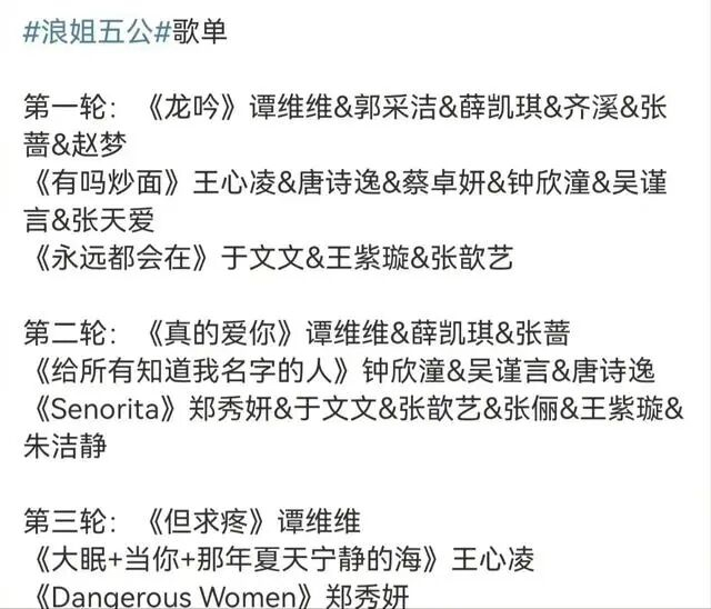 《浪姐3》第五轮公演终于落下帷幕,观众们的热情依旧高涨,这一轮公演不仅赛制变了,节目组还制造了不少悬念,让观众们直到最后一刻都在猜测结果。,公演的赛制确实有了不少变化,从之前的单循环变成了6V6、3V3、1V1的对战攻守模式,观众看着王心凌、郑秀妍和谭维维这三位大牌队长带领各自的组合上阵,场面一度非常火爆,第一轮的表演曲目也非常吸引人,《龙吟》《有吗炒面》《永远都会在》等曲目,各位姐姐们的表现都让人眼前一亮,尤其是王心凌组的《有吗炒面》,不仅阵容实力强,表现力也在线下。,第二轮的表演更是让人捧腹,郑秀妍组率先上阵演唱《senorita》,虽然表现不错,但最终还是失败了,谭维维组的《真的爱你》也让人捧腹,观众们直呼“这声音调!”,场面一度非常热闹,而王心凌组的《给所有知道我名字的人》,虽然也有不错的表现,但最终也没能成功守住擂台。,最令人捧腹的是第三轮,三位队长王心凌、郑秀妍和谭维维都请到了,王心凌负责守擂,其他两人负责攻擂,节目组还巧妙地设置了悬念,王心凌组的《当你》+《大眠》+《那年夏天宁静的海》,听起来像是一场回忆杀,观众们都在期待会不会有意外之喜,谭维维组的《但求疼》更是让人捧腹,观众们直呼“这声音调!”,场面一度非常火爆,而郑秀妍组的《dangerous woman》,虽然也表现不错,但最终也没能成功守住擂台。,除了表演本身,观众们更是看到了不少有趣的互动,王心凌凭借回忆杀成功守擂,观众们纷纷感叹“这声音调!”,场面一度非常火爆,而郑秀妍在这一轮的表现也让人捧腹,尽管最终未能成功守住擂台,但她的表现也得到了不少好评。,有一点让人唏嘘的是,郑秀妍在第五轮的表现确实不太顺利,整轮下来她都没有成功守住擂台,相比之下,王心凌虽然也未能成功守住擂台,但她的表现依然得到了观众的认可,谭维维的表现也非常出彩,观众们都在期待她能在总决赛中有更好的表现。,《浪姐3》第五轮公演不仅表演精彩,观众们也看到了不少有趣的互动和节目组的精心策划,无论是王心凌还是郑秀妍,观众们都在期待她们能在总决赛中有更好的表现,节目组的策划也非常到位,观众们直到最后一轮公演都在猜测结果,场面一度非常火爆。,有人也觉得节目组在某些环节上可能有些过分,比如郑秀妍在第五轮的表现,观众们纷纷认为她在节目中有些被打压,毕竟,郑秀妍在节目前期的表现一直非常出色,观众们都在期待她能在总决赛中有更好的表现。,不管怎么说,《浪姐3》第五轮公演无疑是一场精彩的表演,观众们都在期待接下来的总决赛,希望节目组能继续保持这样的节奏,为观众带来更多精彩的表演。《浪姐3》第五轮公演终于落幕,虽然节目已经进入后期,但这轮公演依然充满了看点,从赛制调整到选手表现,再到节目组的精心安排,观众们的热情依然没减,反而因为节目组的策划更是让人“吃瓜”无穷。,这轮公演的赛制确实有了很大的变化,从之前的多数对决模式,改成了6V6、3V3、1V1的对战攻守模式,这种安排既增加了节目的看点,也让观众能够更直观地感受到选手们的实力对比,尤其是三位大将王心凌、郑秀妍、谭维维担任队长,谁能在关键时刻带领队伍夺胜,谁就能继续留在舞台上,这种淘汰赛的氛围更是拉升到了全新的高度。,话说这轮公演最大的看点,莫过于王心凌和郑秀妍之间的“大对决”,虽然最终结果是王心凌组攻擂成功,但这场对决的每一个细节都让人忍不住为节目组捧场,王心凌凭借回忆杀的绝活,一举拿下晋级名额,而郑秀妍的表现也很亮眼,但最终却被打败了,更有趣的是,郑秀妍在本轮的表演中几乎全败,连最后的押宝都没能成功,这一结果不禁让人怀疑,节目组是不是在故意给这位“翻红女神”点赞?,再说说节目组的安排,第三轮公演的关注度真的很高,尤其是郑秀妍和王心凌两人,几乎成了观众讨论的焦点,王心凌凭借实力和节目组的重视,稳步占据好感度榜首,而郑秀妍则凭借着网友的支持,一路翻红到前三名,两人之间的竞争不仅是舞台上的对决,更是流量和话题的争夺。,这轮公演也有一些小细节值得一提,节目组在选手表现上的把控,从曲目选择到舞台表现,都显得格外精心,尤其是王心凌的歌曲串烧《当你》+《大眠》+《那年夏天宁静的海》,不仅展现了她的音乐才华,更让人感受到她的舞台魅力,而郑秀妍的《dangerous woman》,则延续了她在节目中的“女强人”形象。,最有意思的是,节目组在最后一轮又一次制造了悬念,三位队长分别担任守擂,王心凌守擂、谭维维守擂、郑秀妍守擂,谁能成功保住自己的阵地,谁就能为总决赛争光,但最终结果却让人意想不到,节目组的精心安排又一次被观众们猜透了。,也有不少观众对节目组的策划提出质疑,张俪和张歆艺的被淘汰,虽然他们个人实力不错,但最终却未能进入总决赛,这让人不禁怀疑,节目组是不是在用“选手出场次数”来控制话题?毕竟,这两位选手的表现其实也不错,完全可以在舞台上留下更好的印象。,《浪姐3》这节目确实给观众带来了一场精彩的视听,在节目组的精心安排下,选手们的表现、选手之间的竞争、以及各种悬念的设置,都让人看得既紧张又期待,虽然有些选手的被淘汰让人感慨,但这也正是节目魅力的体现——每一位选手的努力和才华都值得被看见。,吃瓜的时候也不能全盘否定,这些选手们的表现真的很值得欣赏,无