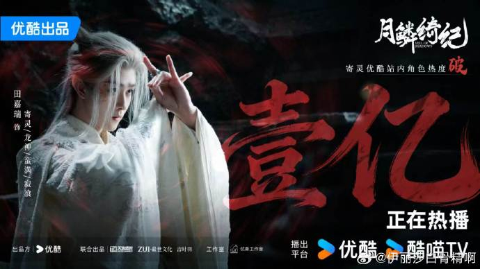 古装奇幻剧《月鳞绮纪》开播52小时便创下优酷站内热度破万的年度纪录,而新生代演员田嘉瑞凭借其饰演的"寄灵/龙神"角色贡献了33%的剧集热度峰值,更以破亿的角色热度值成为平台最年轻的破亿演员。