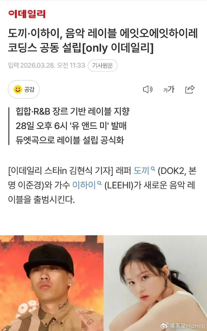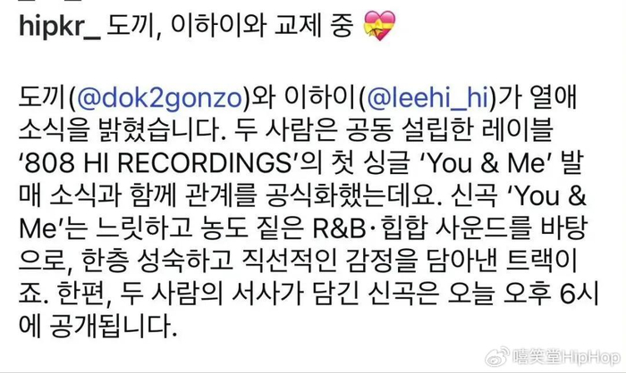 就在刚刚,韩国顶流说唱歌手DOK2突然公开恋情,正式官宣了他和歌手李夏怡(李遐怡)的恋爱关系。