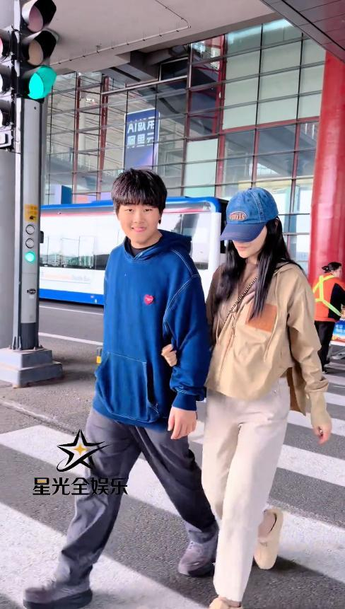 而安吉则显得成熟很多,独自推着行李箱走在前面,虽然话不多,但十分稳重。
