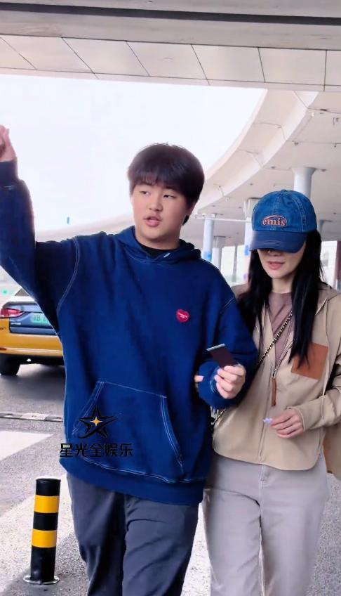 一路上,小鱼儿都黏在胡可身边,从机场通道聊到停车场,话就没停过,依旧是那个爱跟妈妈撒娇的小男生。