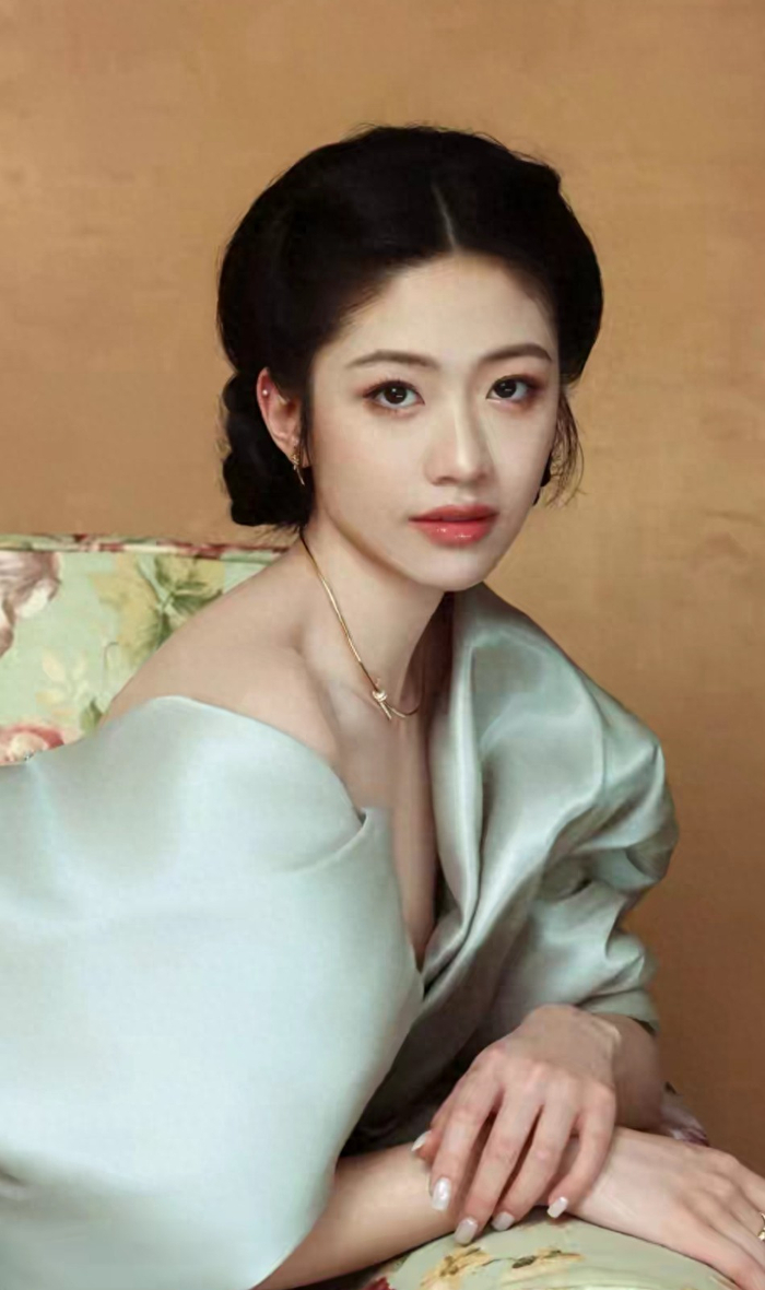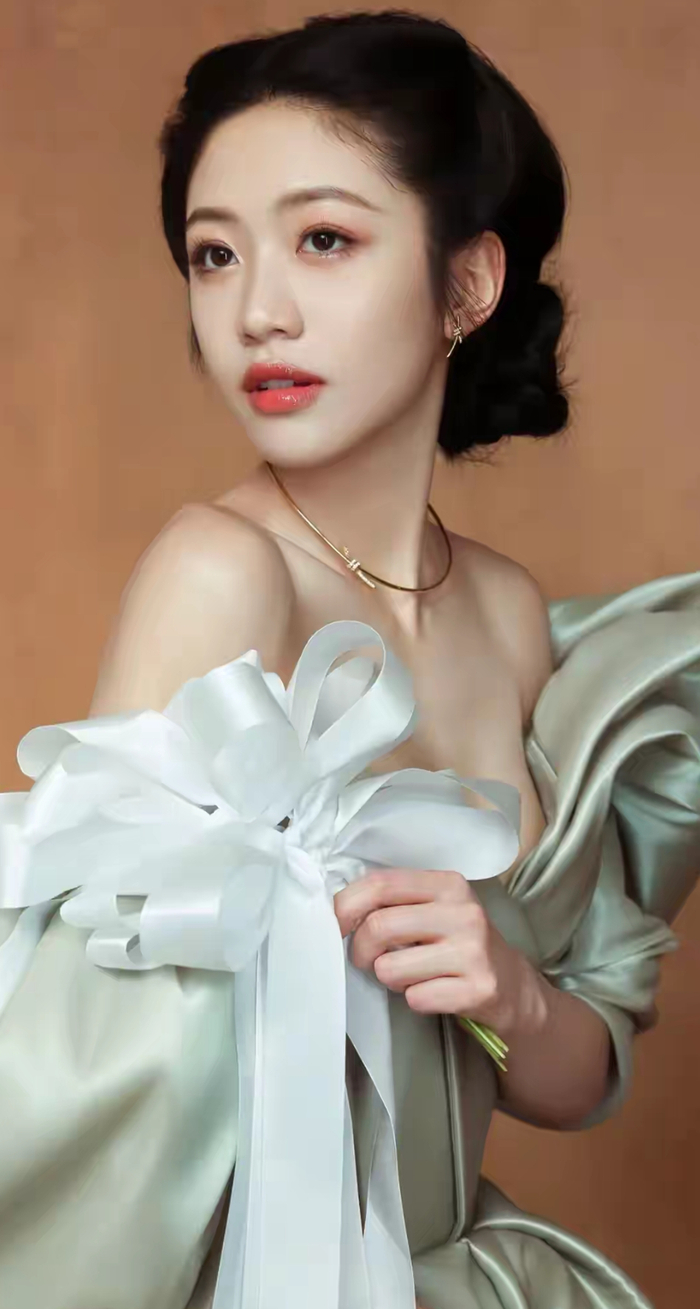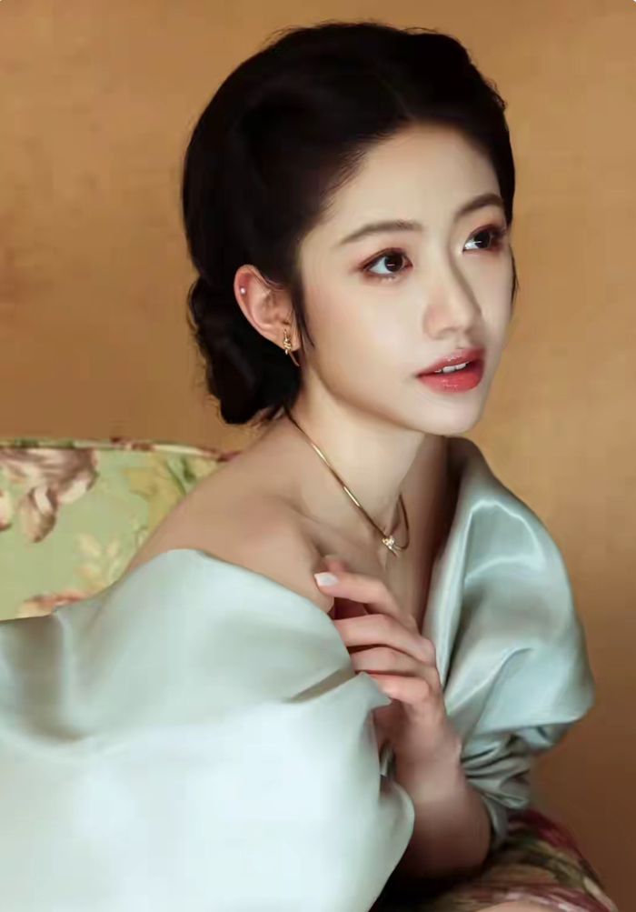 · 妆发与配饰:搭配了精致的金色项圈和低盘发,整体营造出一种清冷、优雅的公主气质。