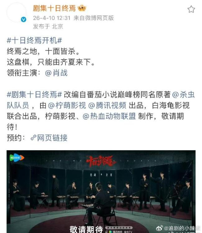 柠萌影视出品的无限流IP大剧《十日终焉》正式官宣,肖战担任男主角。这一消息让期待已久的观众兴奋不已。该剧阵容强大,肖战的影响力和带动力在当前影视行业的寒冬中尤为突出,成为备受瞩目的焦点。