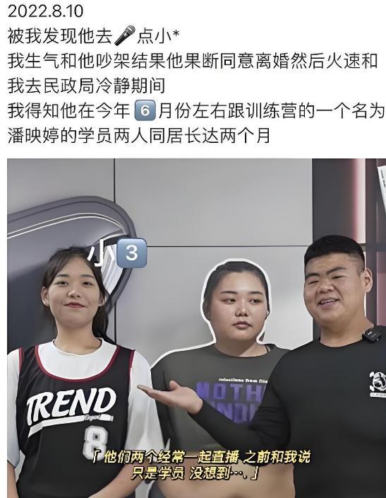 训练营的一个女学员,发了个自拍,背景里有个男人的侧脸,她一眼就认出来是王浩楠。那女学员配文写着:“今天跟王教练单独加练到很晚,收获满满。”