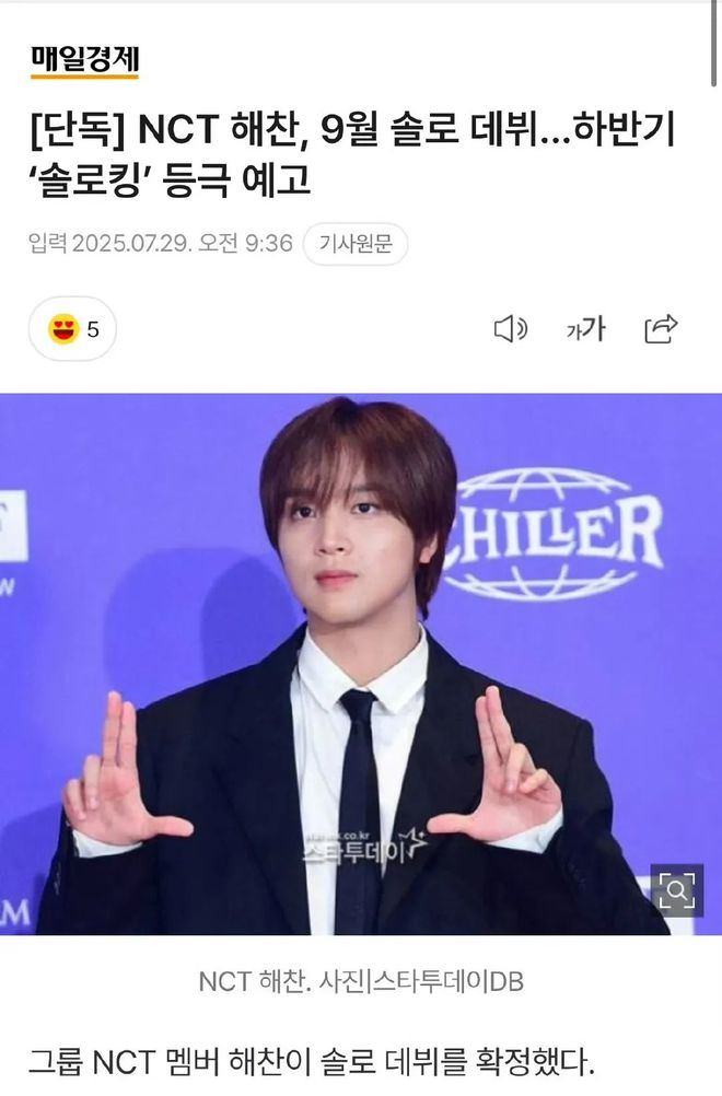 29日,据《今日明星》采访结果显示,楷灿将于9月发行首张Solo专辑。楷灿作为Solo歌手出道是他于2016年7月以NCT 127出道以来时隔约9年。