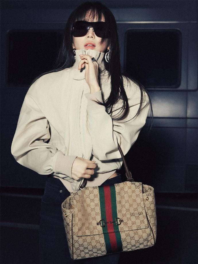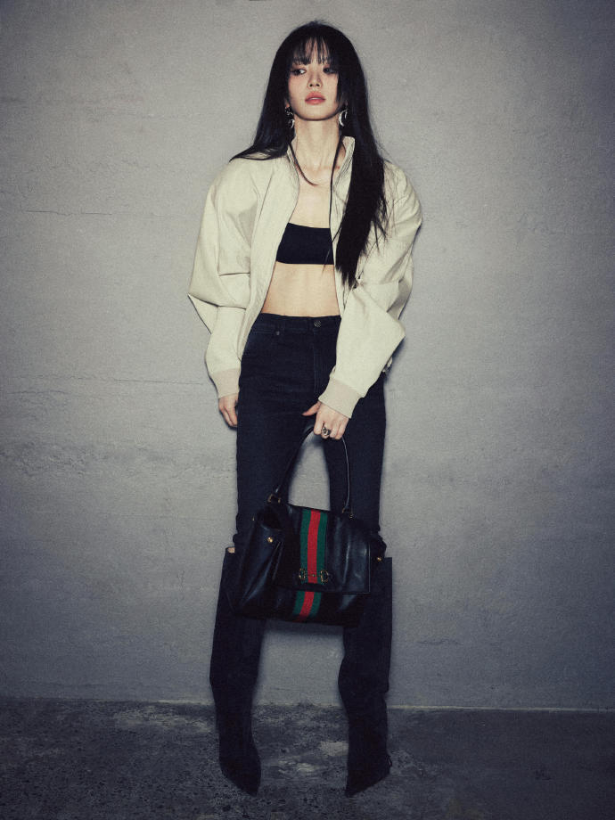 田曦薇则以黑长直刘海造型搭配短款夹克与蕾丝细节,168cm的身材比例利落,突破以往“甜妹”印象,呈现酷感锋芒。