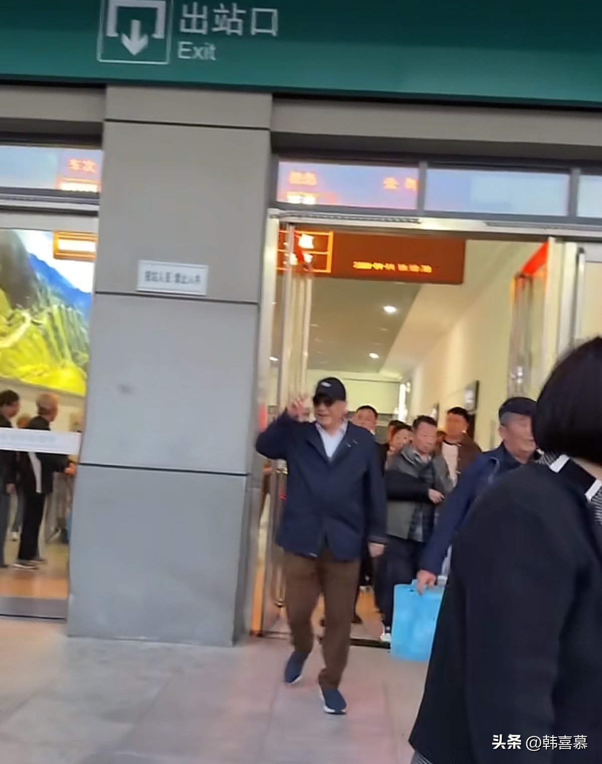 姜昆一个人坐动车来的,他身边也没有助理,他的老婆也没有露面。他看见有人接他,伸出手打了一个招呼。