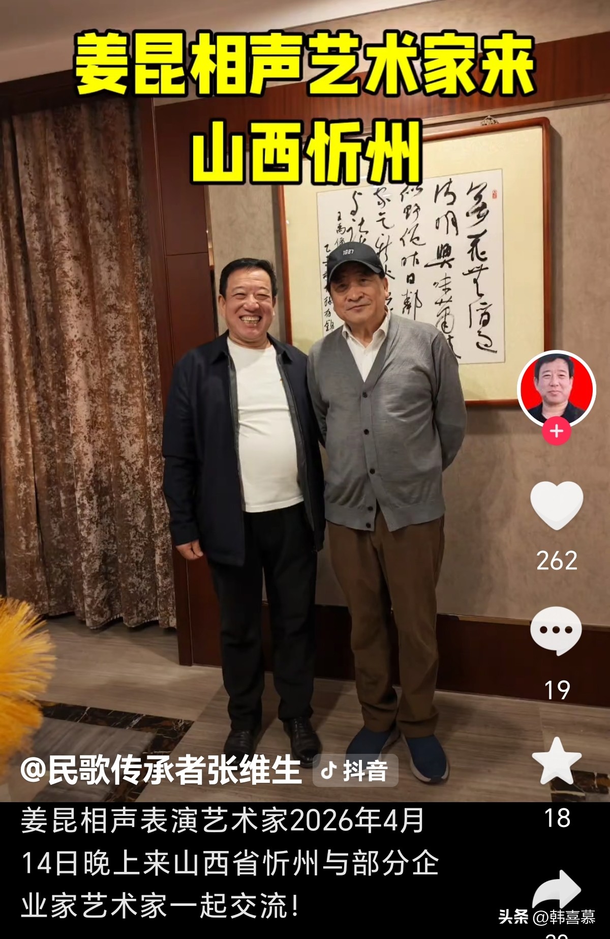 4月14日,姜昆被邀请去了山西,他要参加当地一个公司的活动。