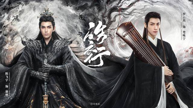 《皓衣行》中陈飞宇饰演墨燃,罗云熙饰演楚晚宁,二人在这组海报中分别都有黑白两种色系的扮相。