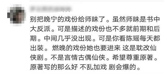 不仅如此,每部耽改剧的女性角色都免不了被群攻的命运,《皓衣行》也未能幸免。陈瑶饰演的师昧,在原小说中的角色本来是男性,但剧组为了过审不得不将此角色性转为女性。在多次路透中都出现了陈瑶的戏份,粉丝怀疑给陈瑶加戏,纷纷到《皓衣行》官微下讨伐。