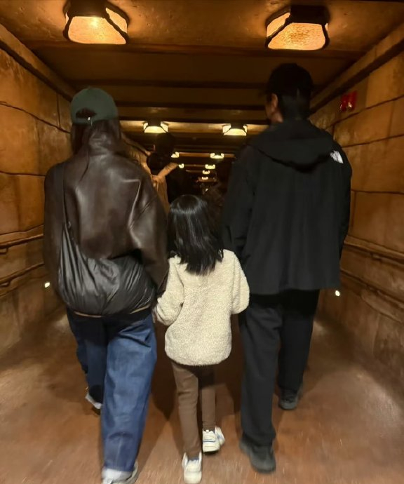 4月2日,上海迪士尼乐园的春日游人如织。网友镜头下的高圆圆一家褪去明星光环:高圆圆身着棕色皮衣搭配牛仔裤,斜挎休闲包,赵又廷则全身黑色装扮,低调佩戴口罩。两人一左一右牵着6岁半的女儿Rhea,小姑娘身高已接近父母腰部,扎着两条俏皮小辫,身穿米色外套与卡其长裤,四肢纤细修长。一家三口悠然穿梭于欢乐的人群中,时而驻足观看巡游,时而俯身与女儿交谈,自然流露的温情被网友形容为“无需剧本的生活治愈片”。