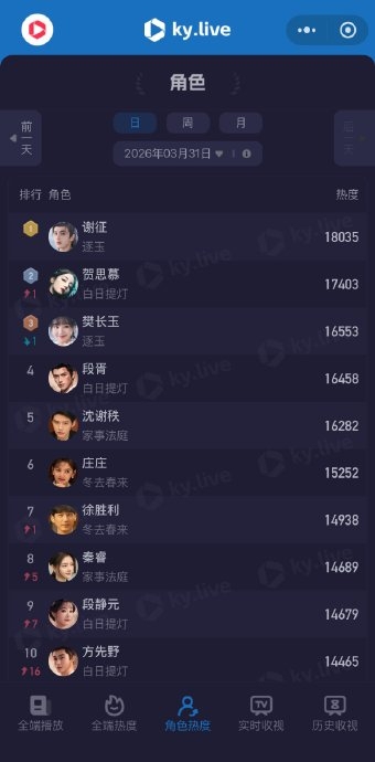 腾讯视频站内角色热度于3月31日突破1亿,刷新平台年度纪录,成为首个达成此成就的影视角色。