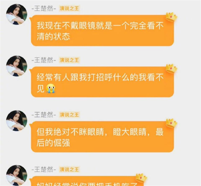 最近,演员王楚然的一段日常分享,让无数近视网友直呼“是我本人”。 她说自己不戴眼镜的时候,完全就是“半盲”状态,别人打招呼根本看不见,手机也得怼到脸上才能用。 她妈妈都忍不住吐槽:“你要把手机吃了? ”