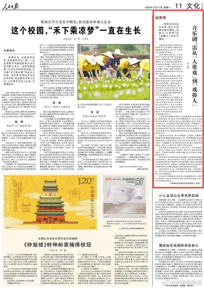 【#阿云嘎人民日报发文#】今天,《人民日报》刊发@阿云嘎Musical 撰写的文章《音乐剧,需从“人带戏”到“戏捧人”》。文章指出,流量演员带动票房,的确能快速吸引新观众,可一旦过度依赖,作品就容易热度高、口碑低,使观众与作品的关系变成“看人”而非“看戏”。这提醒我们,创作须回归内容本身,建立可持续的演员梯队,实现从“人带戏”到“戏捧人”的良性循环。