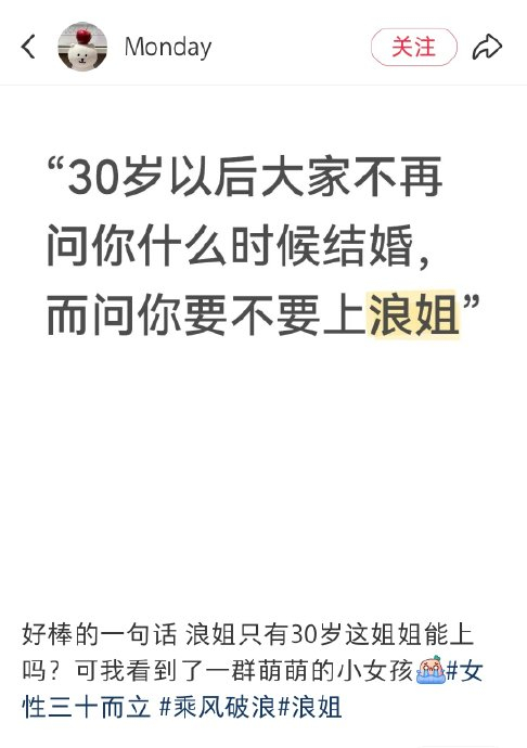 节目彻底扭转了“30+即衰退”的行业偏见,将“浪”转化为自信符号。社会对女性年龄的讨论从“何时结婚生子”转向“能否上浪姐”,如曾沛慈鼓励年轻艺人“两年后上浪姐”,王濛调侃“30岁初舞台不淘汰”,折射出年龄从枷锁变为资历的认知跃迁。观众对30岁参与者的评价变为“好年轻,刚到门槛”,标志着节目推动“三十而立”进化为“三十而骊”的社会共识。
