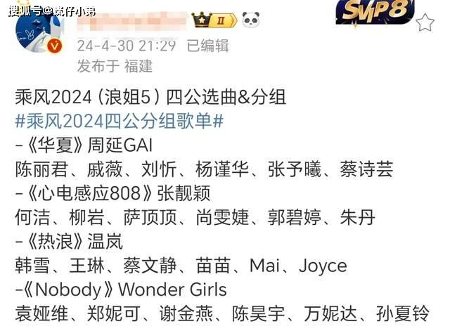 **《浪姐5》第四轮公演歌单曝光:吃瓜简评**,观众们的目光再次聚焦到了《浪姐5》节目上,第四轮公演的歌单和帮唱嘉宾名单曝光后,大家纷纷表示期待,无论是陈丽君的说唱挑战,还是黄丽玲的回归,都让人充满好奇,咱们今天就来一起吃瓜,看看这轮公演都有哪些看点。,陈丽君组的表现堪称本轮公演的最大看点,周延的《华夏》本来就是一首难度较高的说唱歌曲,再加上其他五位姐姐对说唱的经验不足,确实让人担心她们能否驾驭这首歌,蔡诗芸作为说唱歌手的出身,应该能给其他姐姐一些帮助,真正值得关注的还是陈丽君了,她为了配合歌曲的风格,可能会加入一些戏曲元素,这也是她首次挑战说唱内容,真是让人忍不住为她根吊起来。,而袁娅维组的表现则吸引了众多韩国粉丝的目光,他们将翻唱Wonder Girls的经典歌曲《Nobody》,这也是节目第二次演唱韩国歌曲,考虑到敏感问题,节目可能会以英文版为主,但也可能会加中文歌词进行演唱,郑妮可作为首次翻唱这首歌的成员,也是诸多哈韩粉丝的关注焦点,希望她们能演绎出Wonder Girls的经典风采。,除了主打组合的表现,前四季姐姐的回归也让人感到温暖,孟佳、王霏霏、薛凯琪、黄丽玲再次作为帮唱嘉宾,她们将分别与第五季姐姐合作舞台,歌单中,最受关注的还是黄丽玲和蔡文静演唱的《一切都来得及》,这首歌是贾玲减肥成功的首支单曲,配合MV的画面感人至深,大家都期待这对姐妹能否再次展现出贾玲演唱歌曲的独特风味。,这次公演不仅有陈丽君的说唱挑战,还有前四季姐姐的帮唱嘉宾表现,更有黄丽玲和蔡文静的翻唱单曲,确实让人期待值爆表,无论是观众还是粉丝,都希望这轮公演能带来更多惊喜和精彩表现,吃瓜的时候,咱们不禁为这些姐姐们的表现感到期待,真心为她们加油!