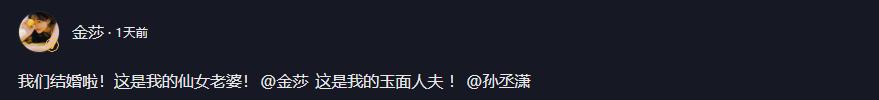 【1】2026年4月9日发布 金莎《我们结婚啦!这是我的仙女老婆!@金莎这是我的玉面人夫 !@孙丞潇》