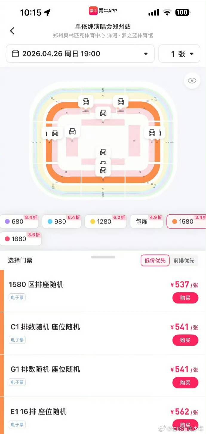 据悉,单依纯此次郑州演唱会的门票销售情况并不理想。二级市场出现了大幅打折现象:内场原价1880元的票,最低降到了约640元,相当于打了3.4折;980元的票仅需300余元就能拿下;部分渠道甚至推出了低至700元的打包价。这样的“打骨折”行情,在当红歌手的演唱会中并不多见。