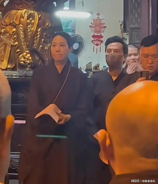 5月5日,甄子丹和老婆汪诗诗现身浙江某寺庙,参加浴佛节,照片中,两个人都穿着海青服,看起来非常专注虔诚。