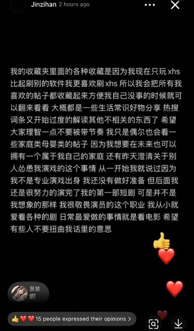 2026年4月10日,金子涵通过社交媒体回应网络传闻,明确否认过去七年与任何人发生过性关系,并解释其小红书收藏夹中出现大量母婴类内容,是因个人对未来组建家庭的向往,引发热议!