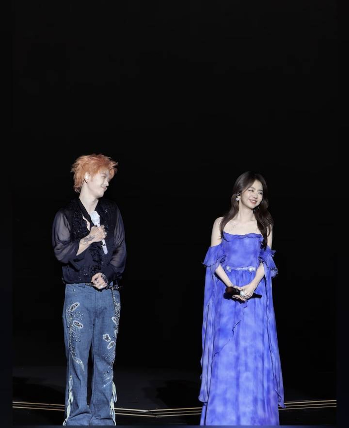 舞台上,谭松韵身着一袭蓝色长裙,优雅地走向王栎鑫,仿佛从时光深处走来。当《最好的我们》那熟悉的旋律响起,两人并肩而立,眼神交汇间,是十年岁月沉淀下的默契与情谊。他们不再是剧中那个充满遗憾的耿耿和路星河,而是以更好的模样,共同唱响了那段属于所有人的青春记忆。合唱后的拥抱,更是让现场无数观众泪目,仿佛是对剧中所有意难平的温柔补偿。