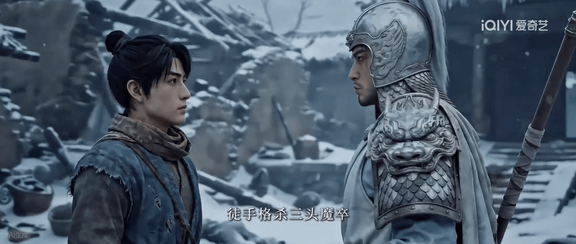 剧作当中最亮眼的,是战场上的战斗戏码。这类戏,要是放在电影或者电视剧作品当中进行实拍,则耗费的时间和金钱都比较多了。尤其是两方的将领都骑着战马,进行具体打斗的内容,每一个分镜头的拍摄,都是有难度的,而且需要专业的团队配合才能完成。比如说,咱们今年春节档的《镖人》,很多制作成本就放在了战马打斗实拍上。反观《冰封三国》,它用AI制作出来的战场打斗内容,什么质量呢?也是能看的。