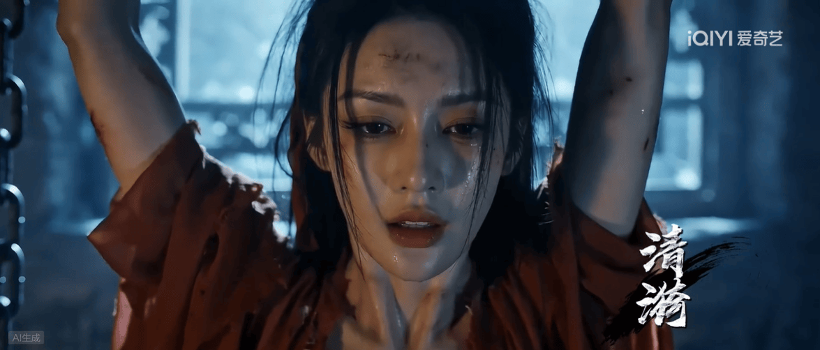 这部AI制作出来的电视剧,还有一个特点,在血腥和情色镜头上,都是较为克制的。不知道这是AI制作的原始结构,还是制作者们的克制使然。比如说,某些战斗细节当中,长枪竟然不会刺入对方的身体,只是在表面一点,就算是刺杀成功了。再比如说,剧作当中,男主角发病,需要女主角用自己的身体来紧急救治,换言之,就是某些网文小说当中说的“双休”,在这个场景呈现上,该剧也是克制的,女主角还穿着睡衣。