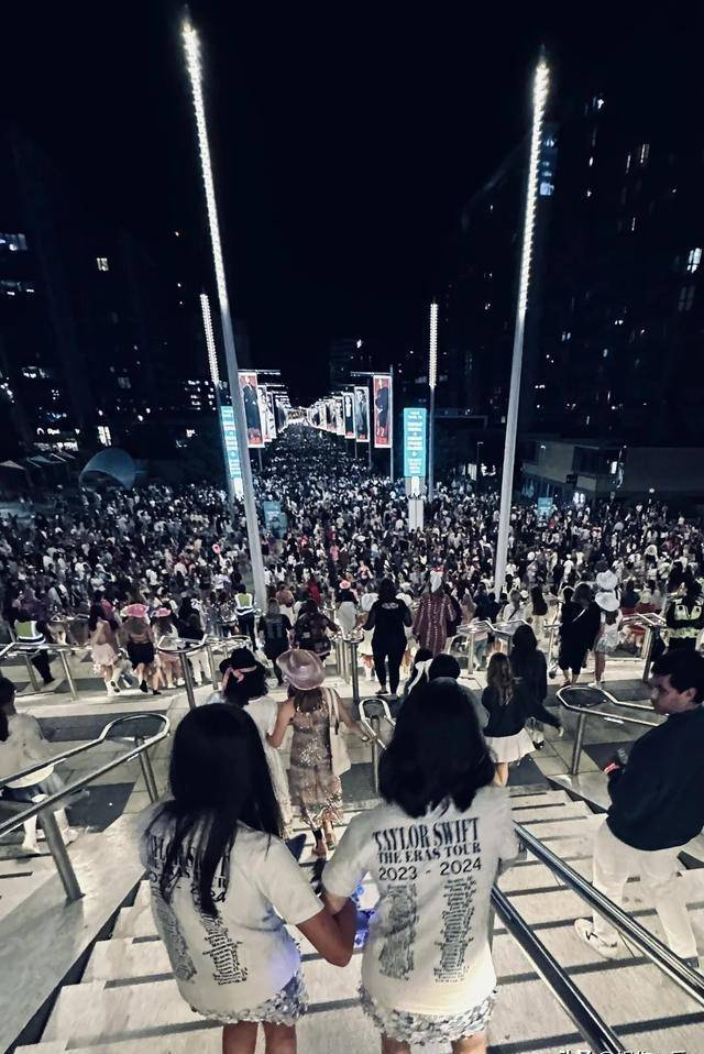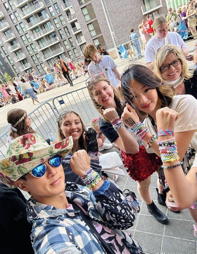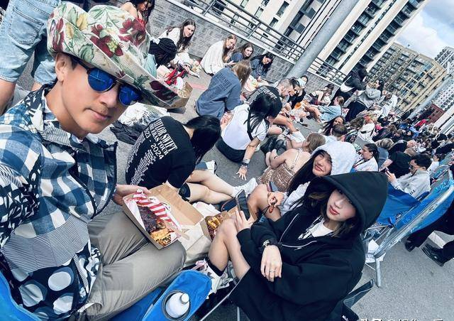 在演唱会门口等待的时候他们围在一起分享美食,Nei Nei兴奋地翻看着手机里霉霉的照片,不时与吴尊分享自己的“粉丝心得”,而吴尊则耐心倾听,偶尔还会开几句玩笑,逗得Nei Nei咯咯直笑。他们偶尔抬头望向远处的场馆,眼中闪烁着对即将到来的音乐盛宴的无限憧憬。