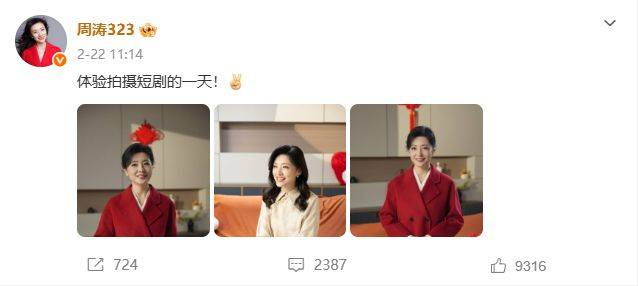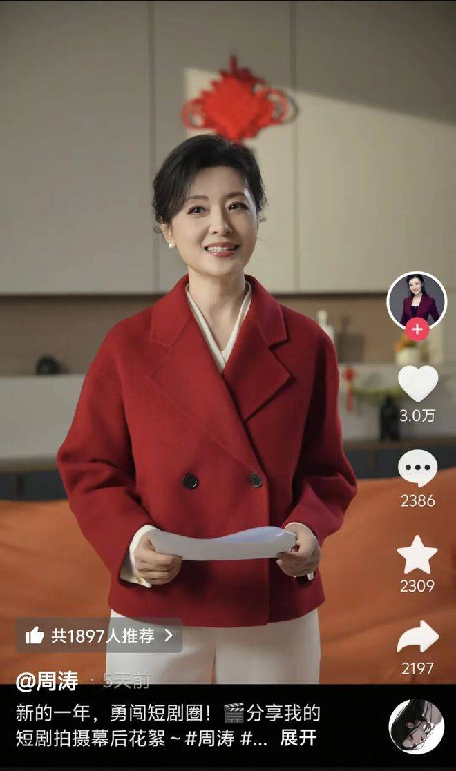 近日,前央视主持人周涛通过社交媒体向大家宣布:新的一年,勇闯短剧圈!她在一段视频中直言,这次尝试让她觉得非常有趣,创作的状态既轻松又自在,仿佛在打开新的大门。
